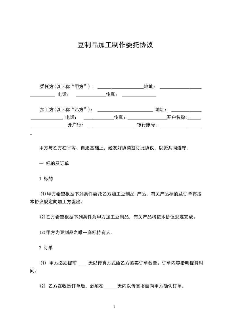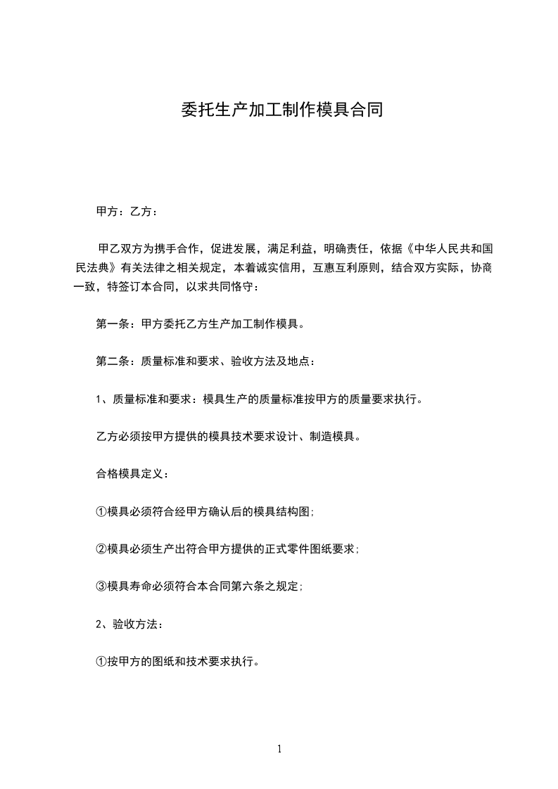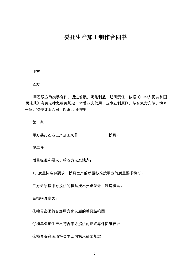 第一条:甲方委托乙方生产加工制作模具。