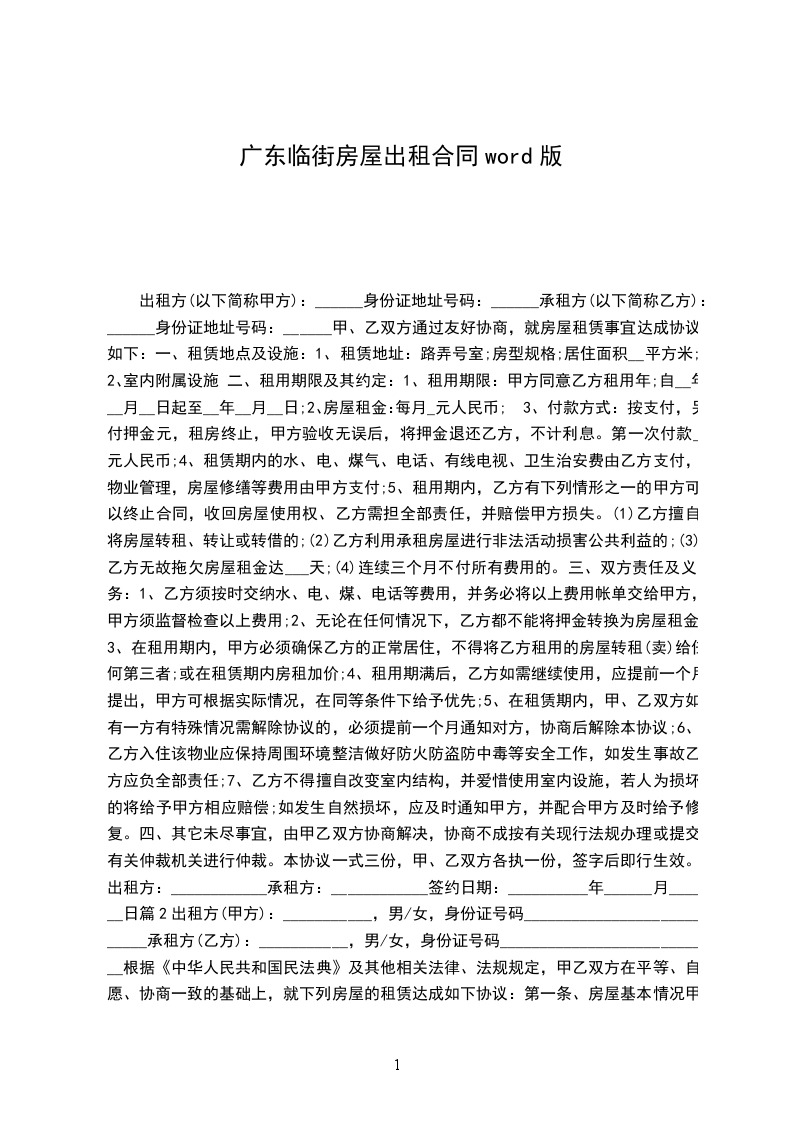 第二条租赁期限租期_____年,自_____年__月__日起至______年__月__日止。承租人有下列情形之一的,出租人可以中止合同,收回房屋:.承租人擅自将房屋转租、转让或转借的;2.承租人利用承租房进行非法活动的,损害公共利益的;3.承租人拖欠租金累计达30天的,并赔偿违约金_____元。合同期满后,如出租方仍继续出租房屋,承租方享有优先权。但租金按当时的物价及周围门市租金涨幅作适当调整。