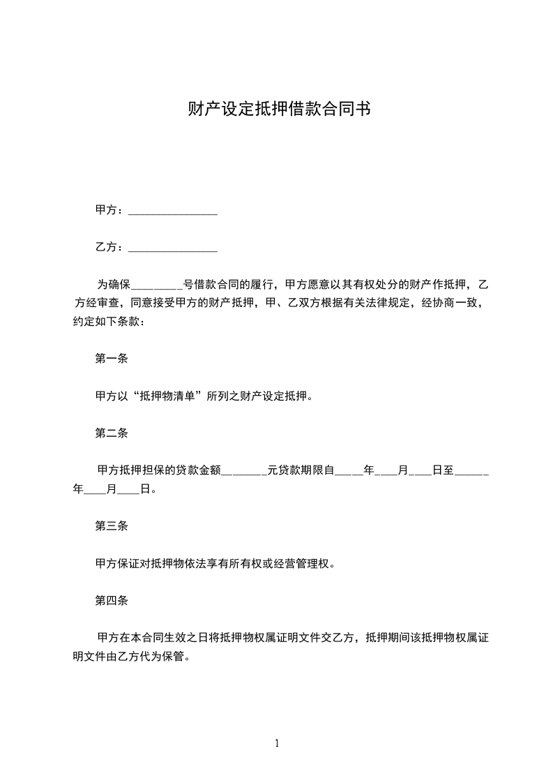为确保_________号借款合同的履行,甲方愿意以其有权处分的财产作抵押,乙方经审查,同意接受甲方的财产抵押,甲、乙双方根据有关法律规定,经协商一致,约定如下条款: