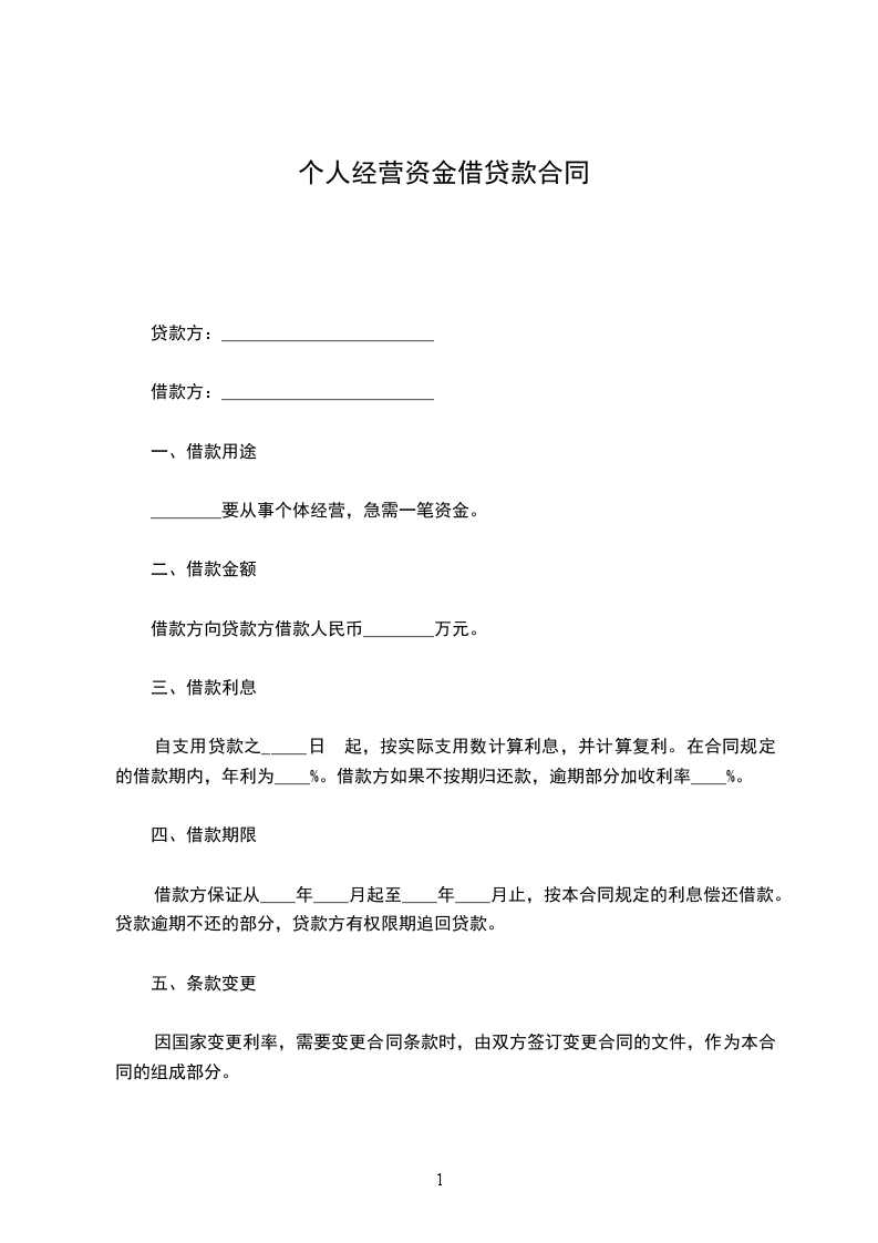 第一条借款金额:__________________。