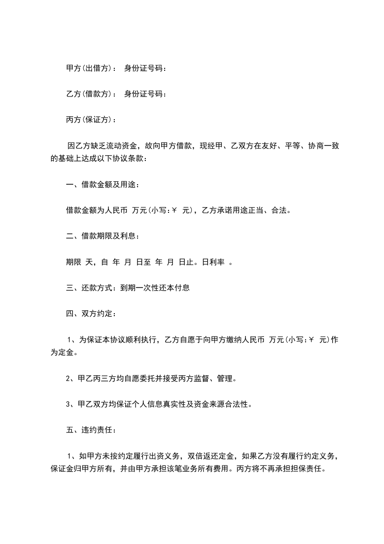 一、双方就借款事项达成一致,约定如下: