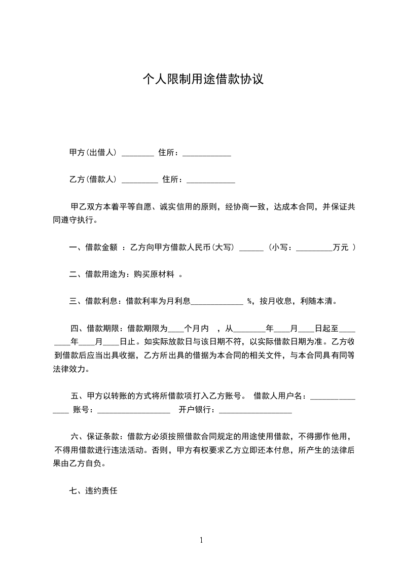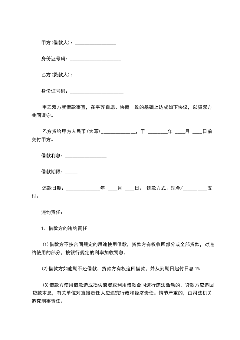 借款方向贷款方借人民币________元。