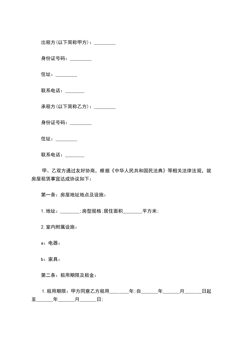 2.房屋租金:每月人民币______元(大写:________);