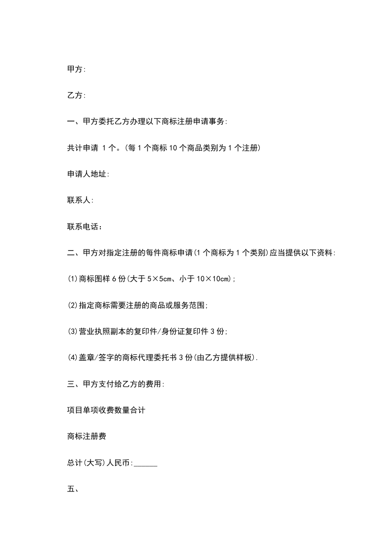 9.商标注册费用为____元/类(含工商规费和代理费),商标设计费为____元。