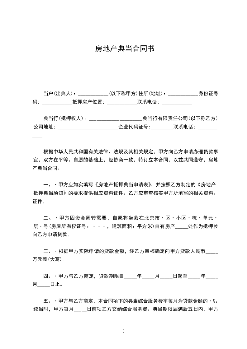 根据中华人民共和国有关法律、法规及其相关规定,甲方向乙方申请办理贷款事宜,双方在平等、自愿的基础上,经协商一致,特订立本合同,以兹共同遵守,房地产典当合同。