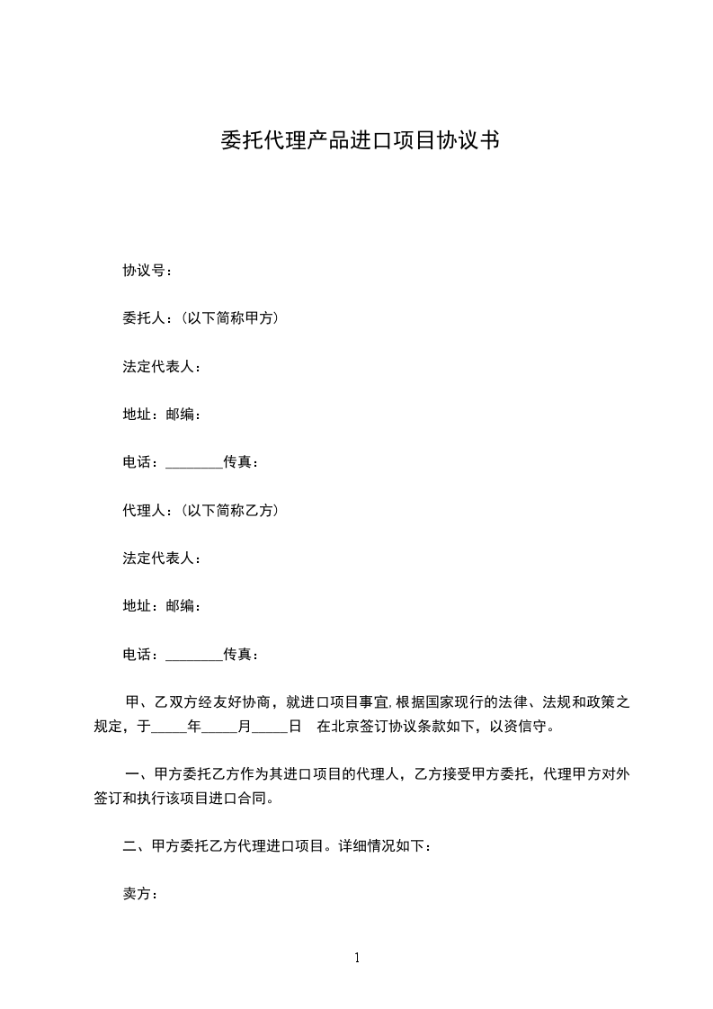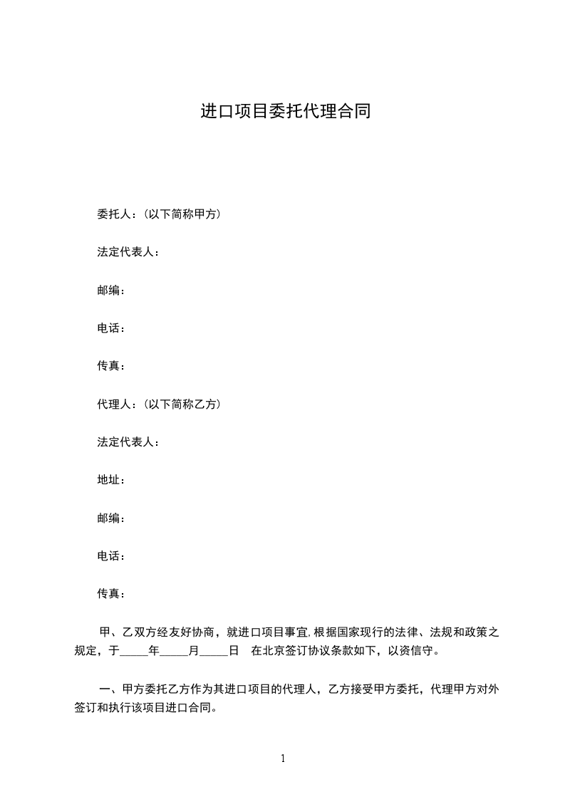 一、甲方委托乙方作为其进口项目的代理人,乙方接受甲方委托,代理甲方对外签订和执行该项目进口合同。