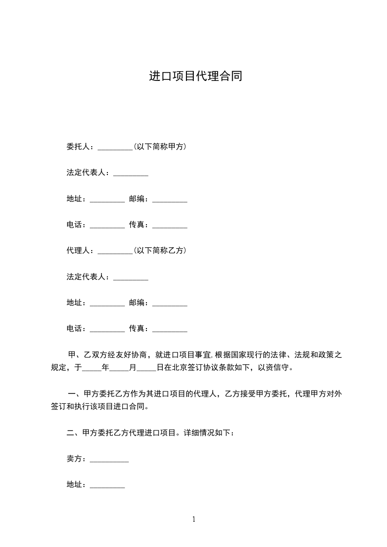 甲、乙双方经友好协商,就进口项目事宜,根据国家现行的法律、法规和政策之规定,于_____年_____月_____日 在北京签订协议条款如下,以资信守。