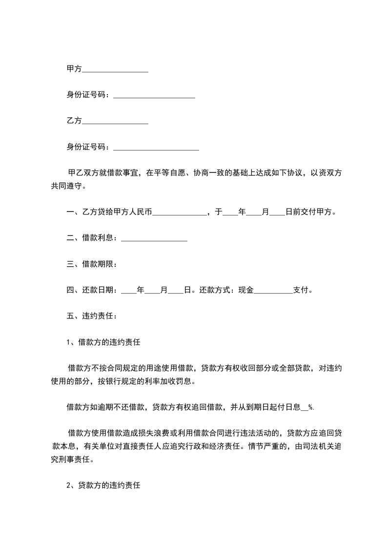 一、乙方贷给甲方人民币(大写)______________,于____年____月____日前交付甲方。