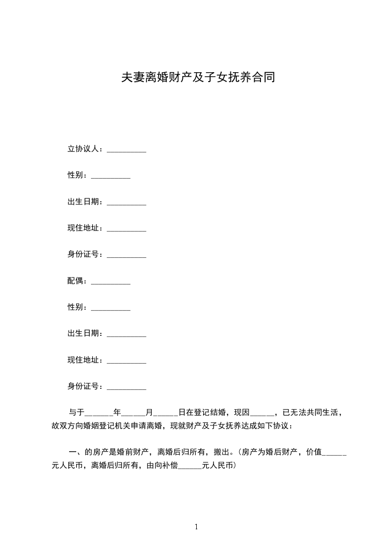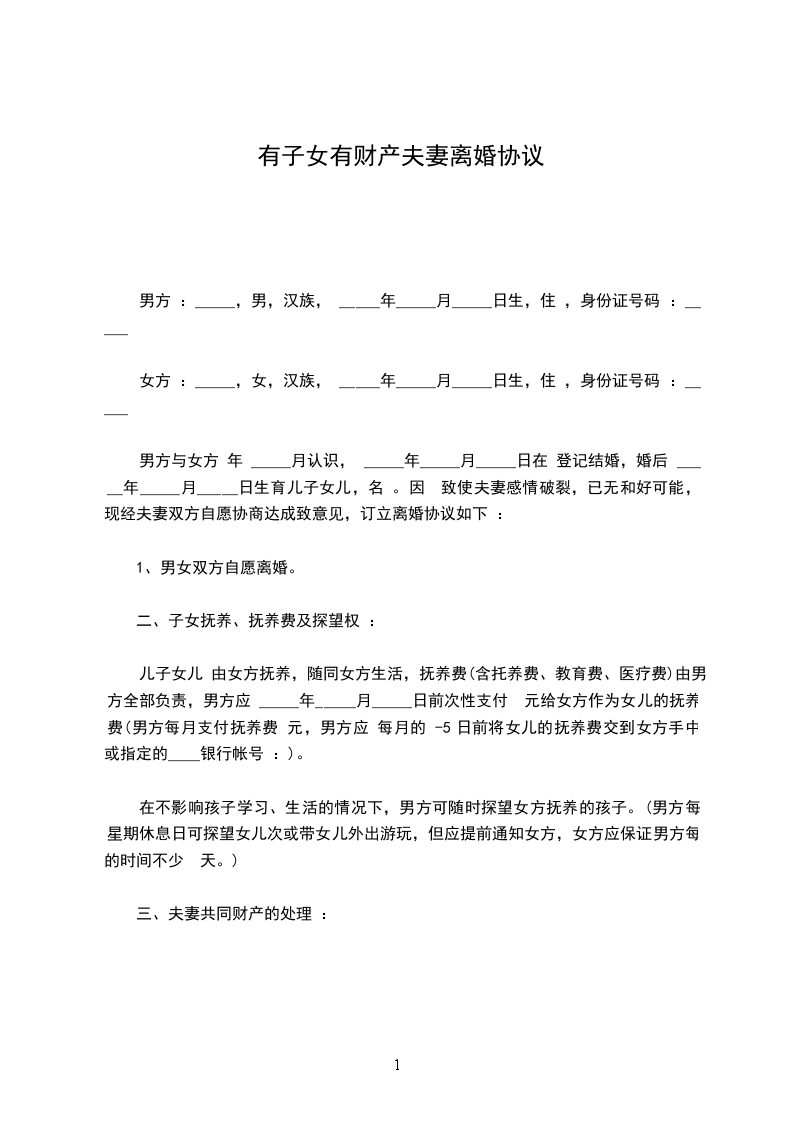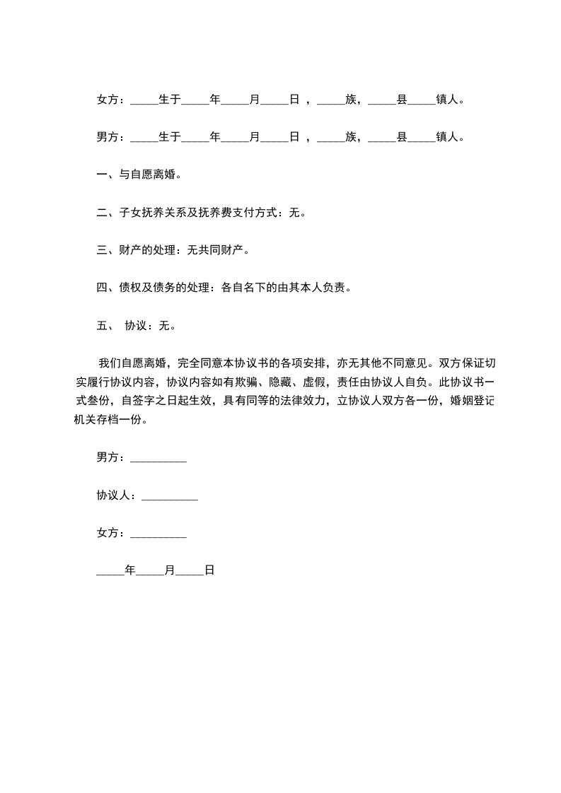 女方:___,女,汉族,__年_月_日,住址:__省__县__镇__村__号,身份证号码:___________________________.