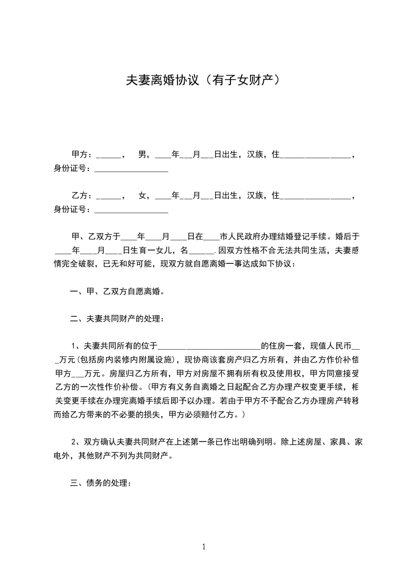 男方与女方于_____年_____月_____日 在区民政局登记结婚,于_____年_____月_____日 (农历___月初)生育__子(女),取名(性别,男/女,汉族,身份证号码:_________________)。后甲乙双方常因琐事吵架,长期感情不和,致使夫妻感情破裂,已无和好可能,现甲乙双方自愿协商达成一致意见,订立离婚协议如下: