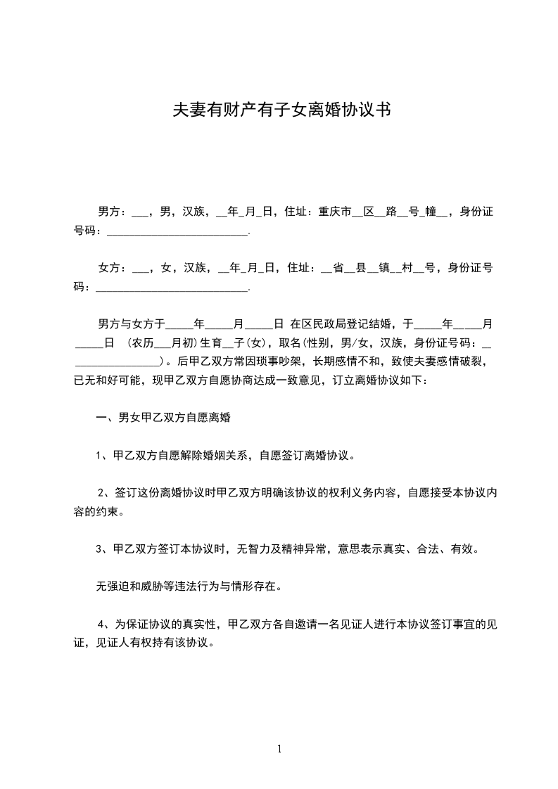 男方:___,男,汉族,__年_月_日,住址:重庆市__区__路__号_幢__,身份证号码:_________________________.