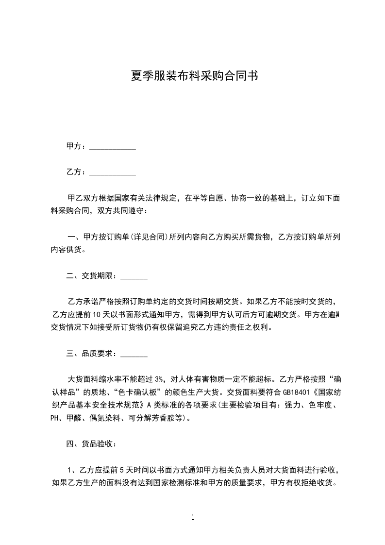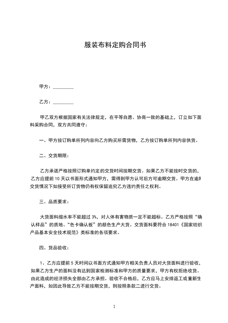 甲乙双方根据国家有关法律规定,在平等自愿、协商一致的基础上,订立如下面料采购合同,双方共同遵守: