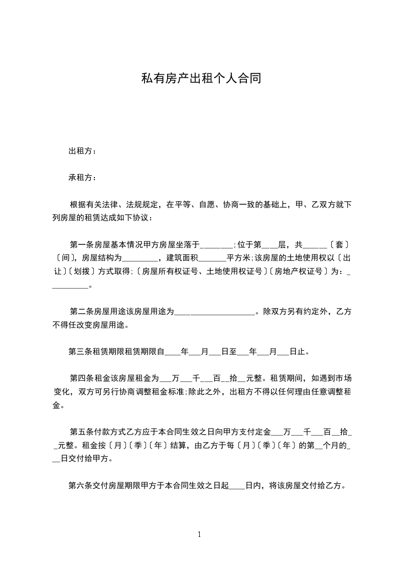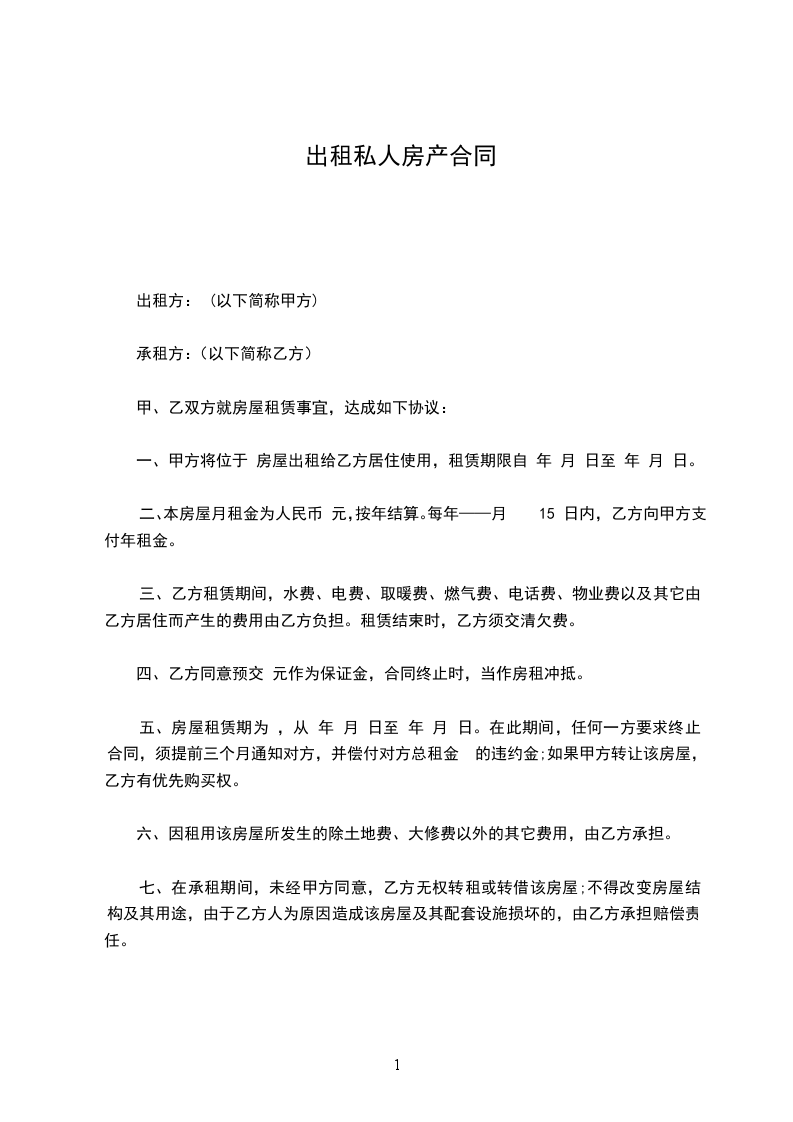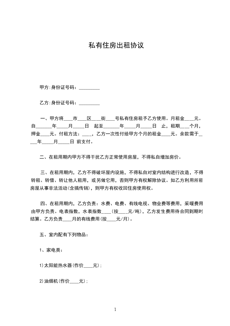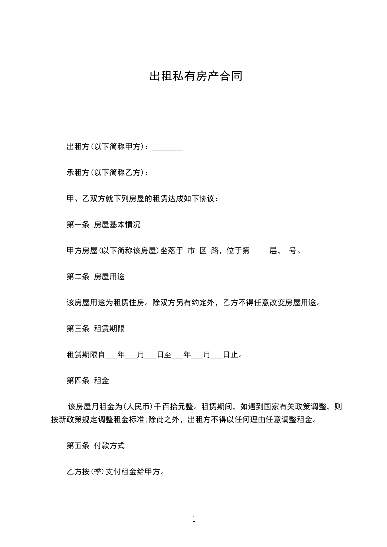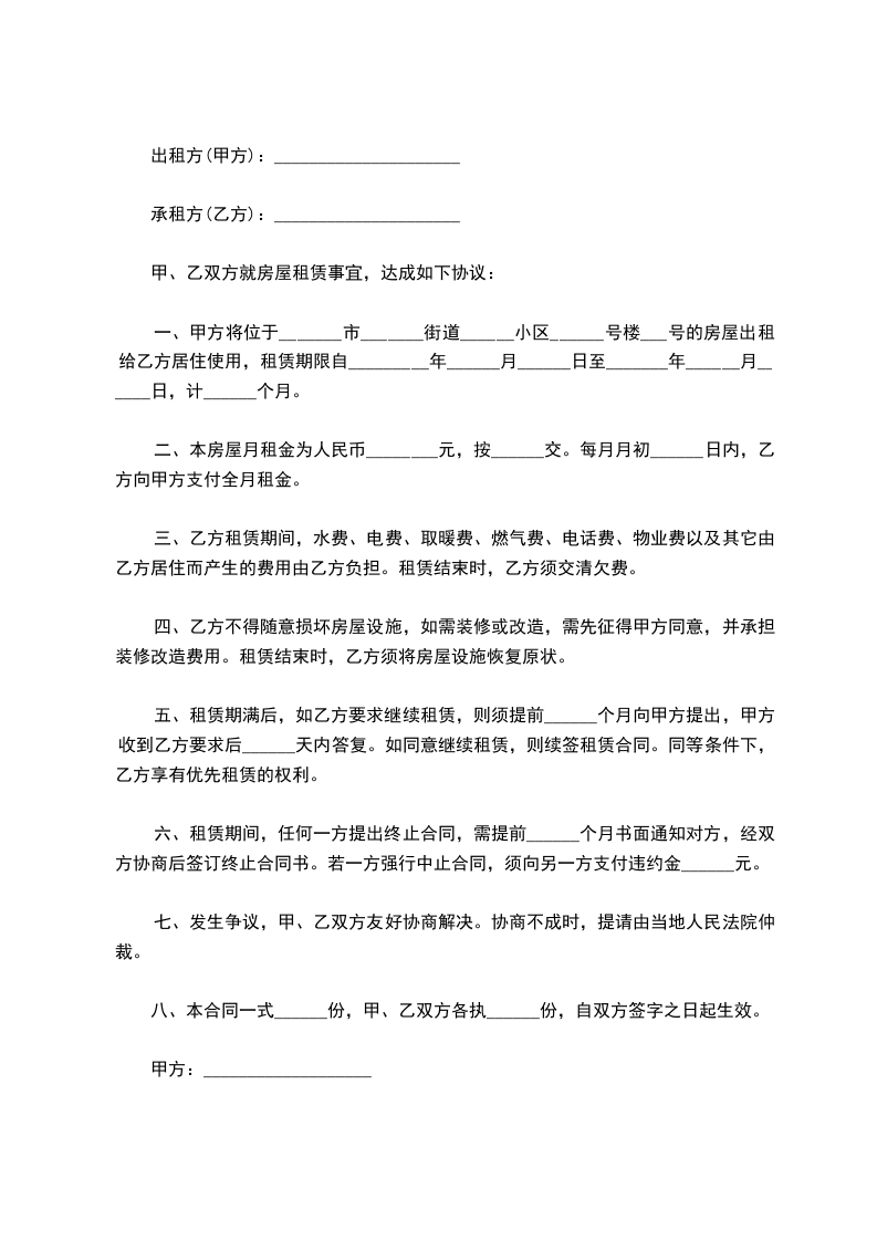 一、甲方将拥有产权或处置权的____市房屋,出租给乙方居住使用。