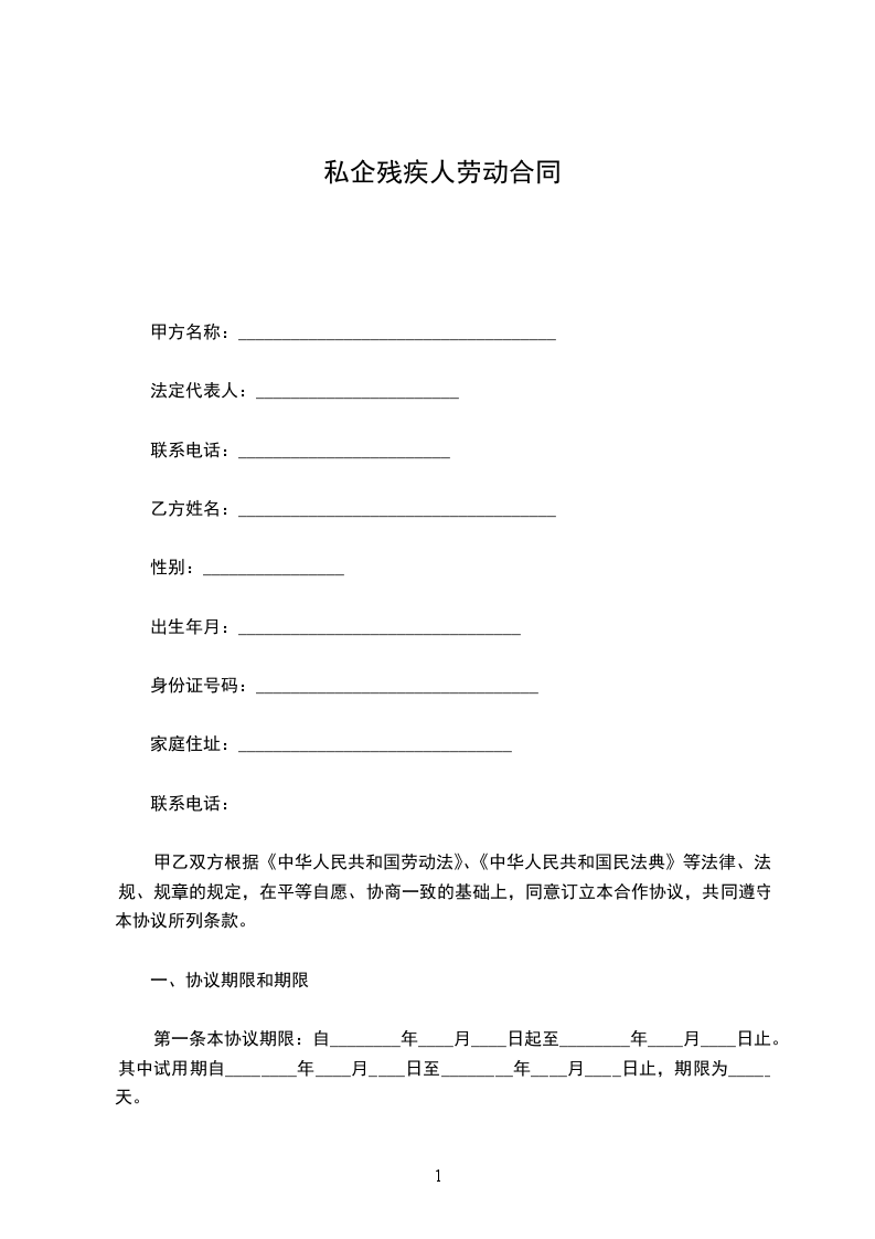 第一条根据甲方工作需要,同时考虑到乙方身体残缺,经甲乙双方协商,乙方在甲方从事________岗位工作。经甲、乙双方协商同意,可以变更工作岗位。