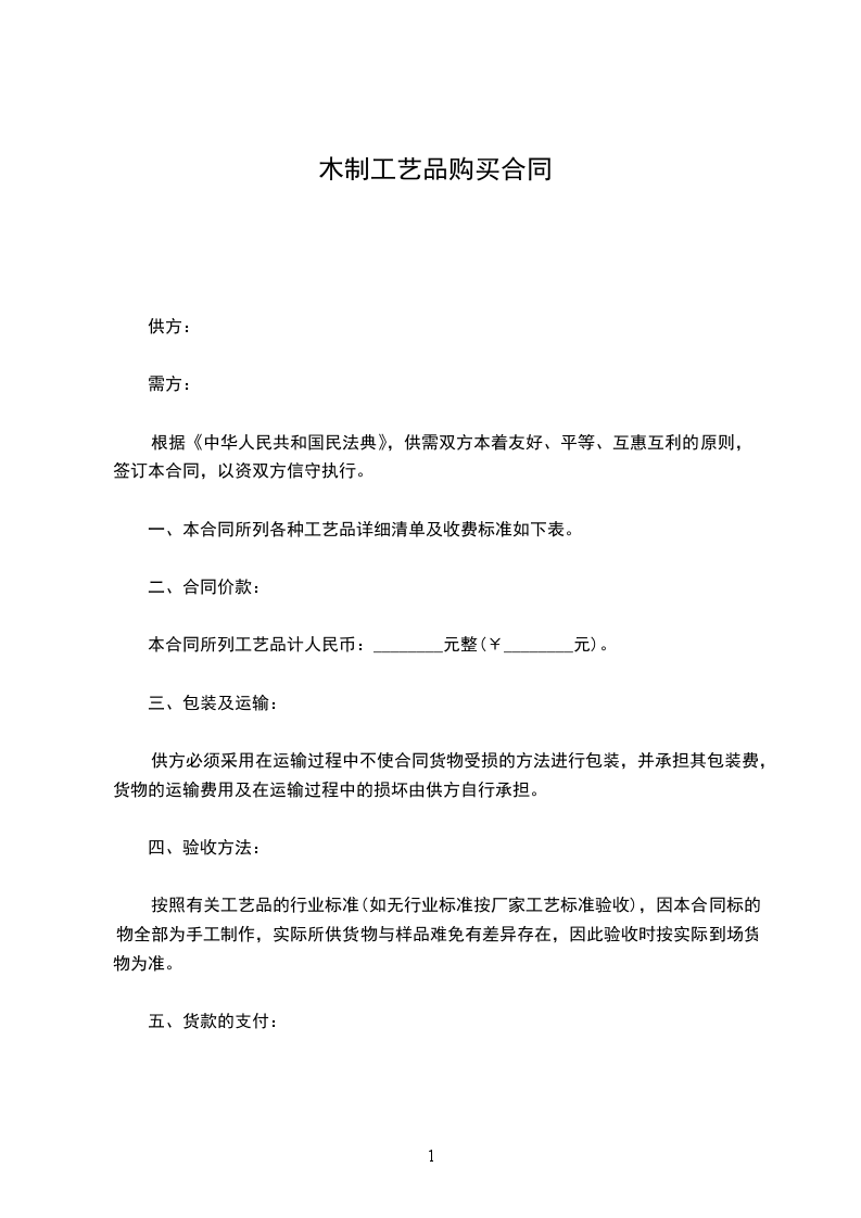本合同所列工艺品计人民币:________元整(¥________元)。