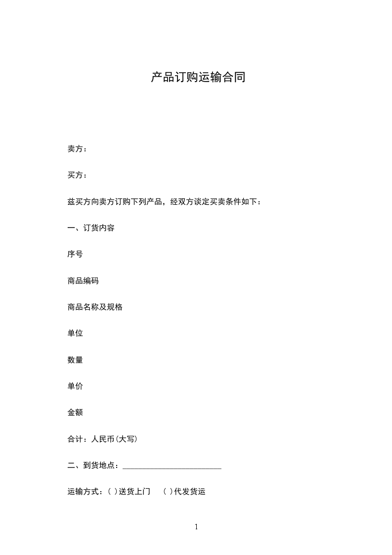 一、订货内容