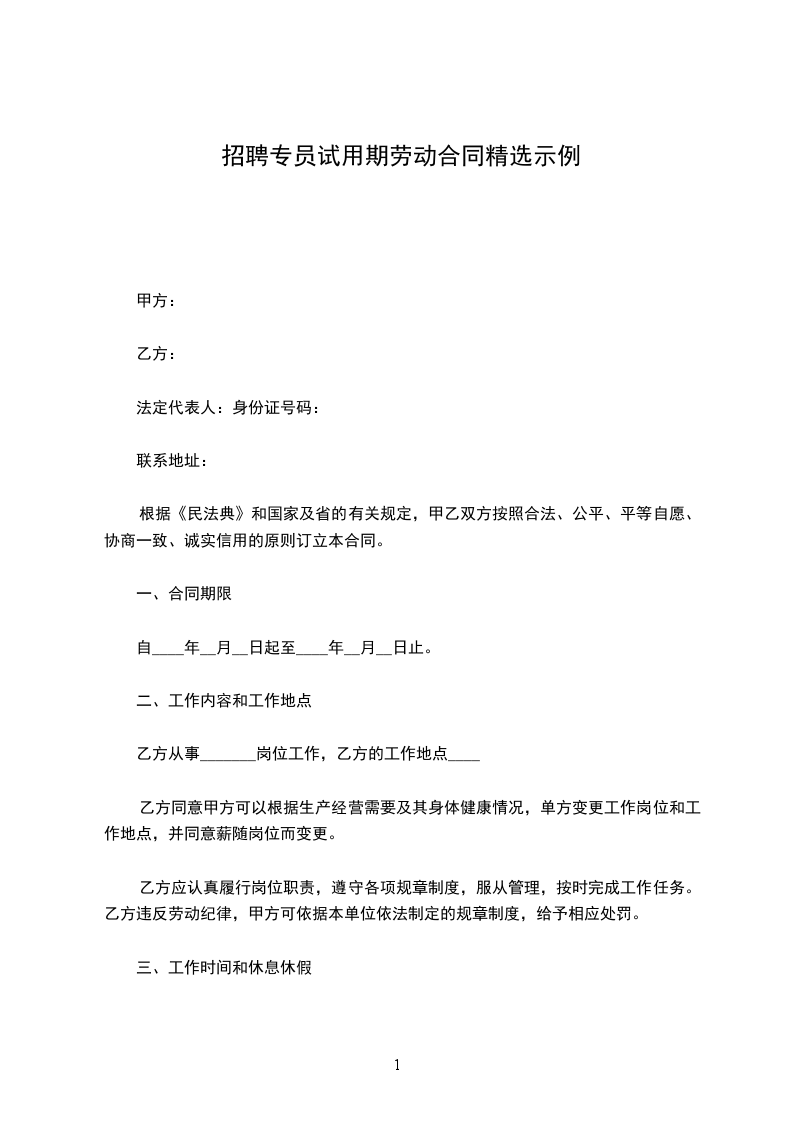 一、试用合同期限: