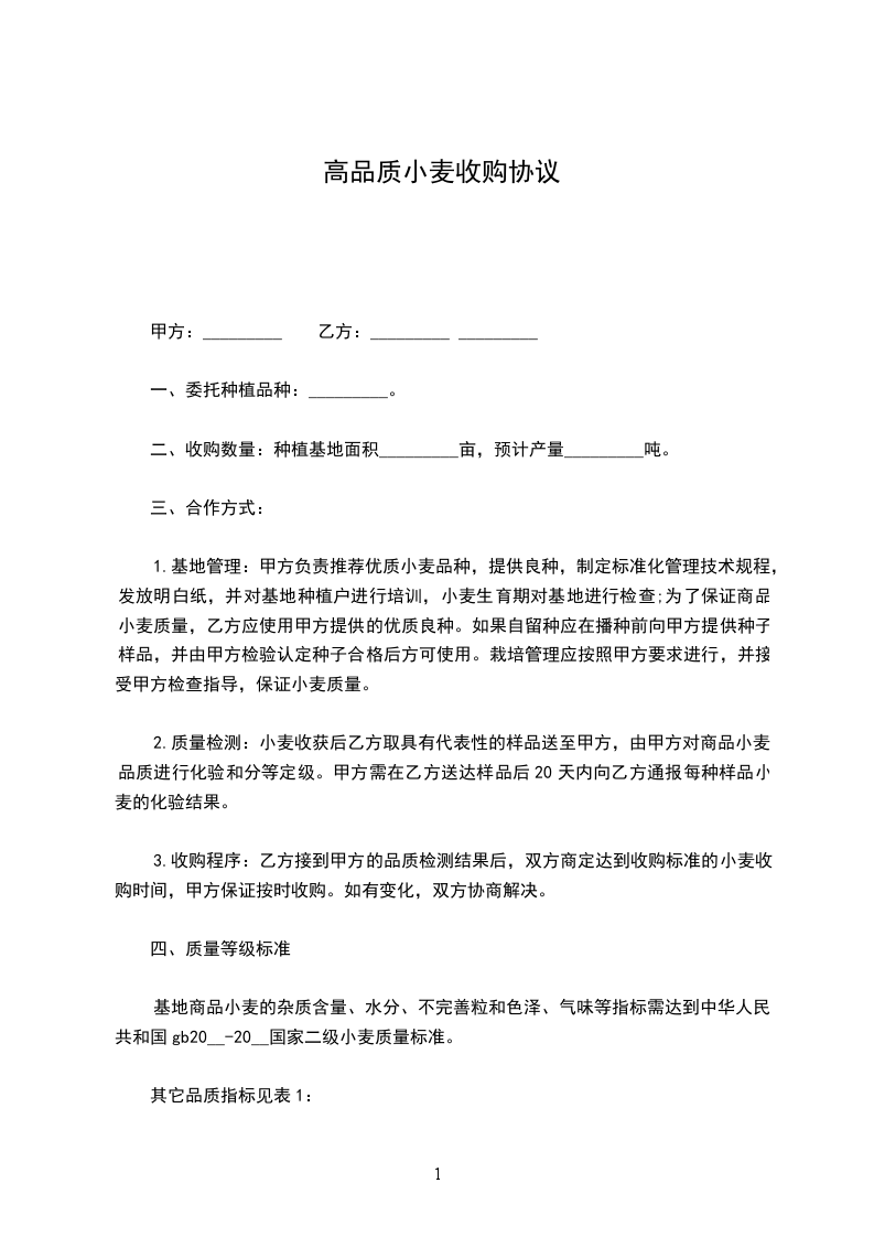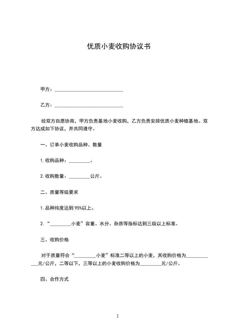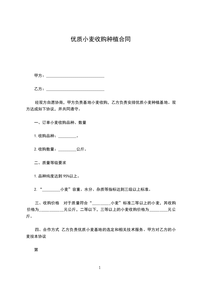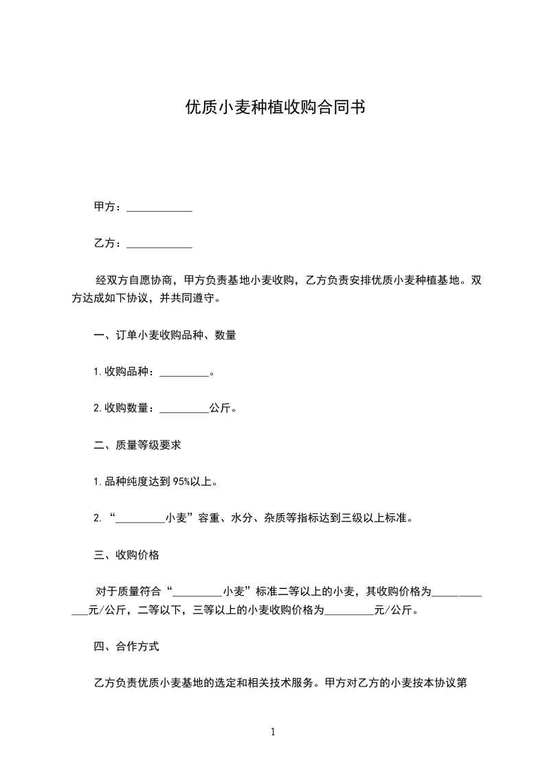经双方自愿协商,甲方负责基地小麦收购,乙方负责安排优质小麦种植基地。双方达成如下协议,并共同遵守。