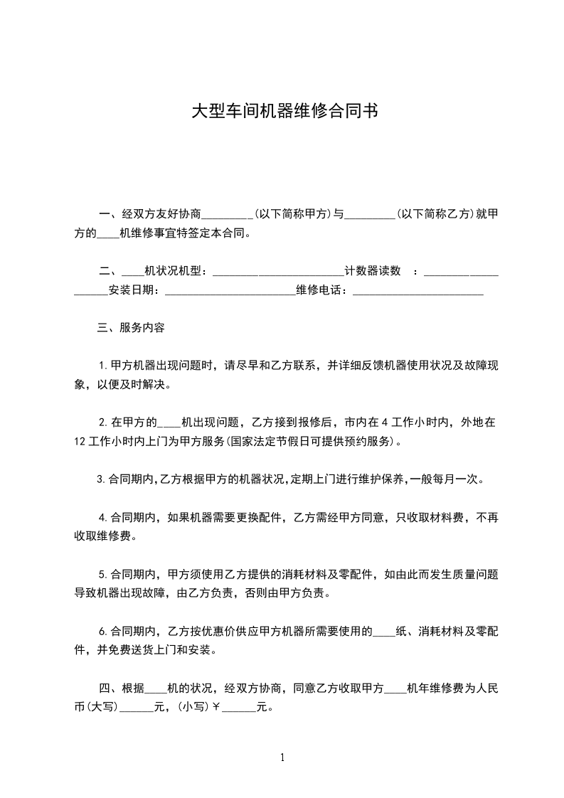 三、甲方在日常使用中如遇机器故障,拨打乙方服务电话:_________,乙方将在五小时内派人上门检修。