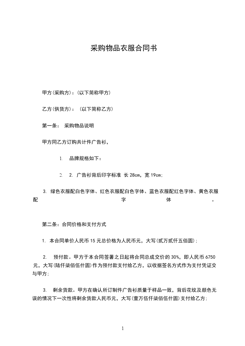 3. 剩余货款。甲方在确认所订制件广告衫质量于样品一致,背后花纹及颜色无误的情况下一次性将剩余货款人民币_____元,大写(壹万伍仟柒佰伍什圆)支付给乙方;
