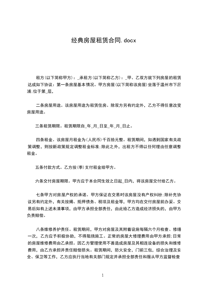 十二、本租约自立约日起至_________年_________月_________日止有效。一或_________份,甲乙双方各执_________份,如有未尽事宜,双方协议解决。