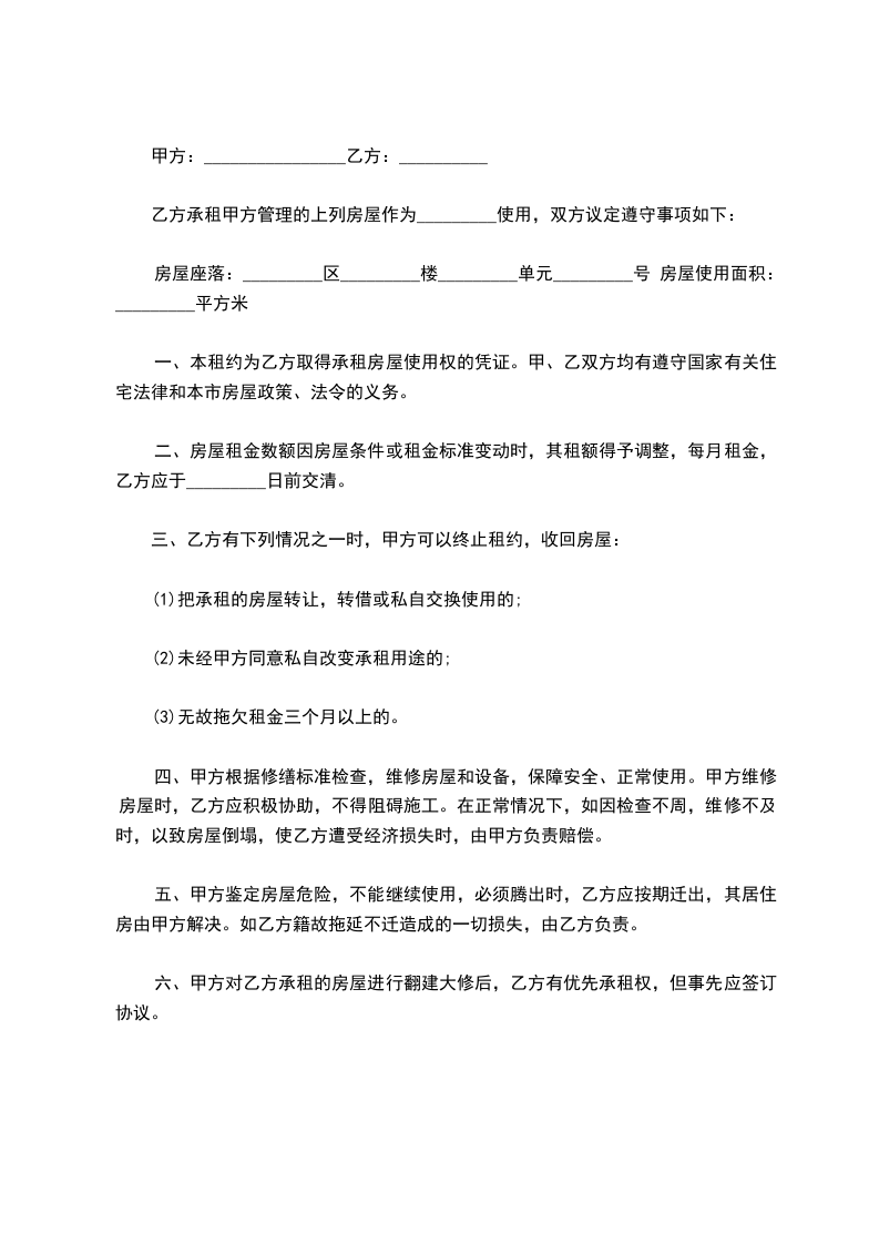 乙方承租甲方管理的上列房屋作为_________使用,双方议定遵守事项如下: