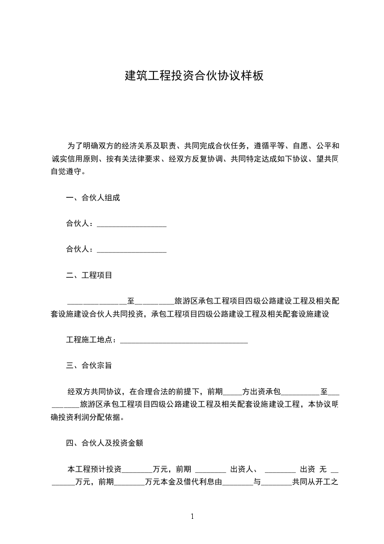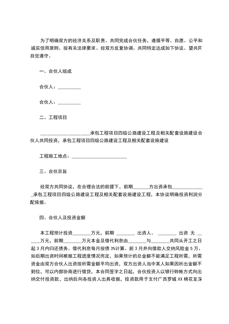 建筑工程投资合伙协议