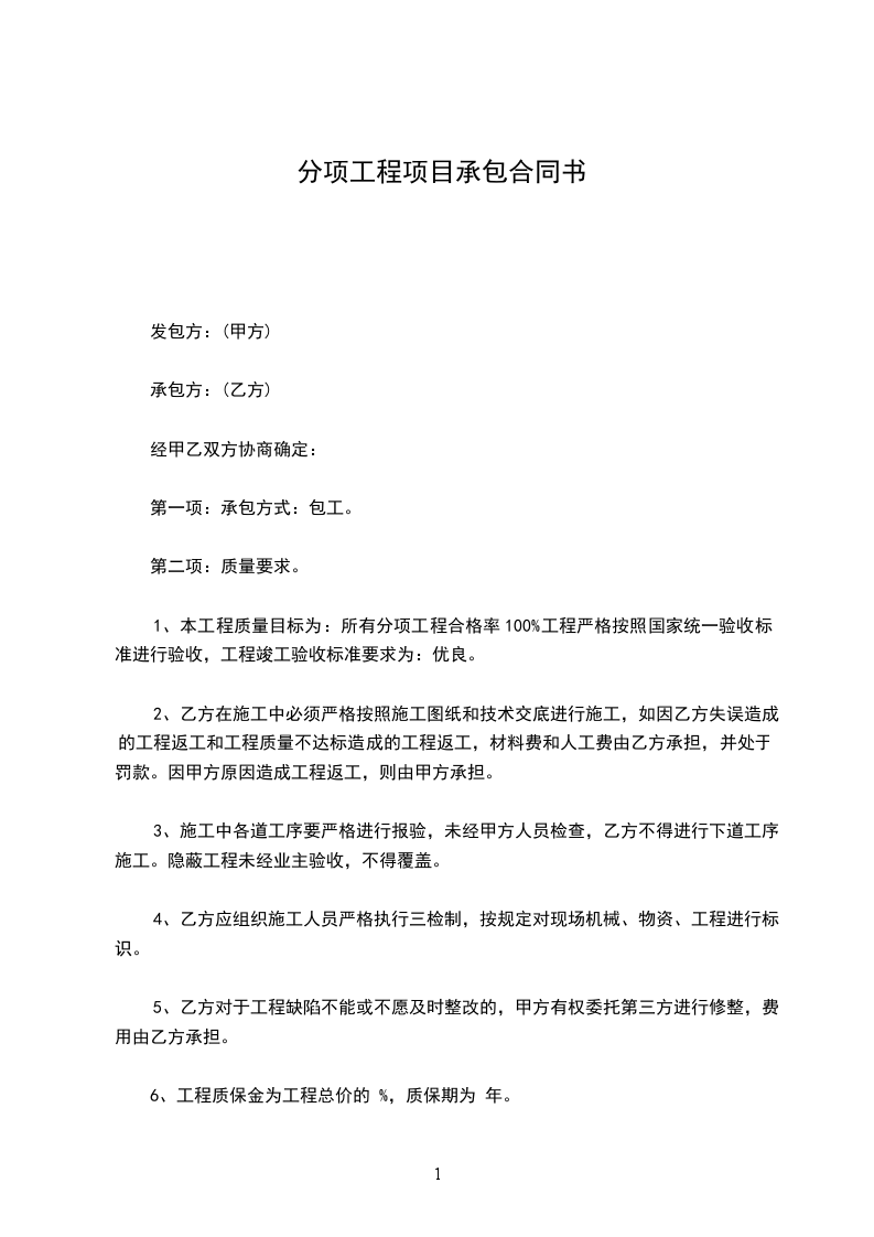 6、工程质保金为工程总价的 %,质保期为 年。