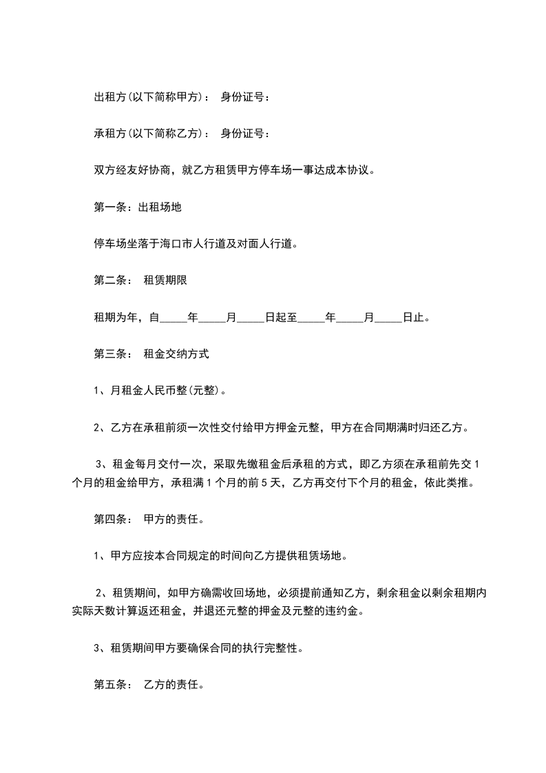 双方经友好协商,就乙方租赁甲方停车场一事达成本协议。