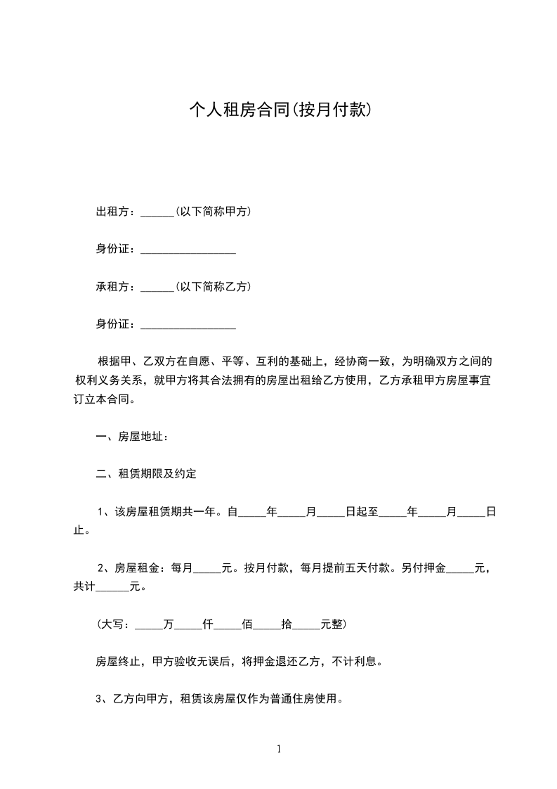 甲、乙双方自本合同签订之日起,由乙方支付甲方人民币_____元作为押金。租用期满,终止租用后,甲方在检查房屋内设施完好无损后,需退回乙方的元租金。