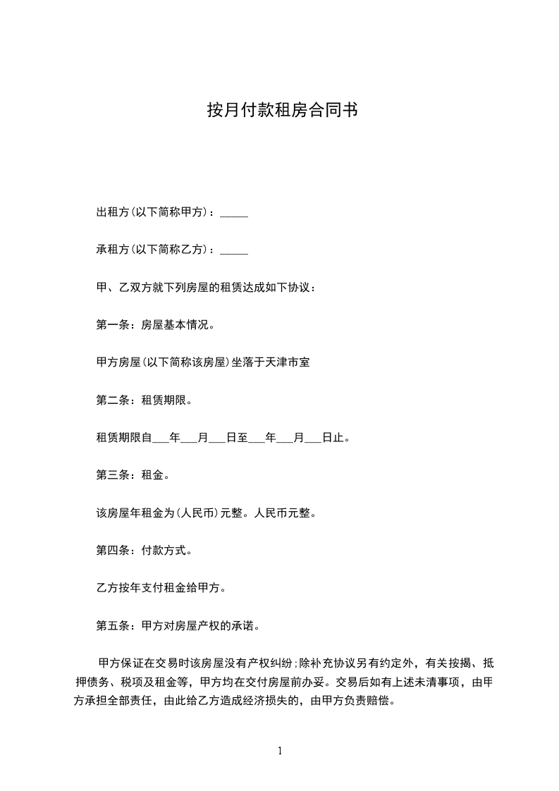 甲方房屋(以下简称该房屋)坐落于天津市室