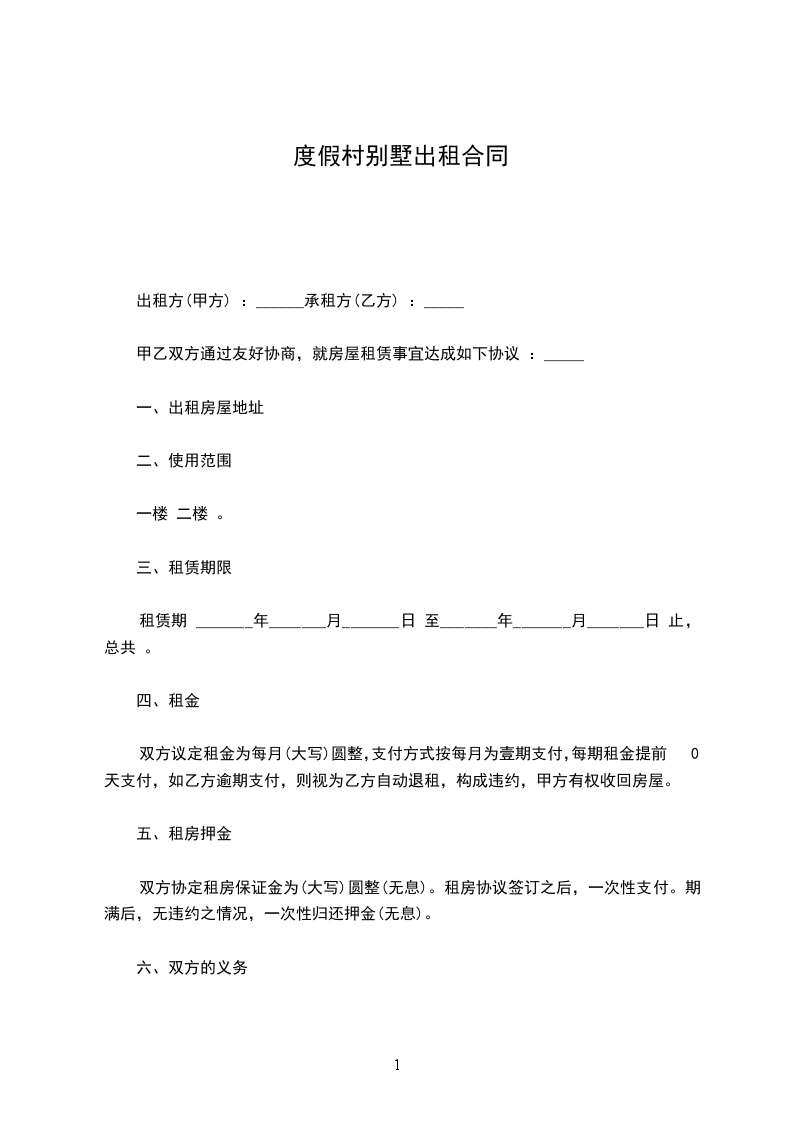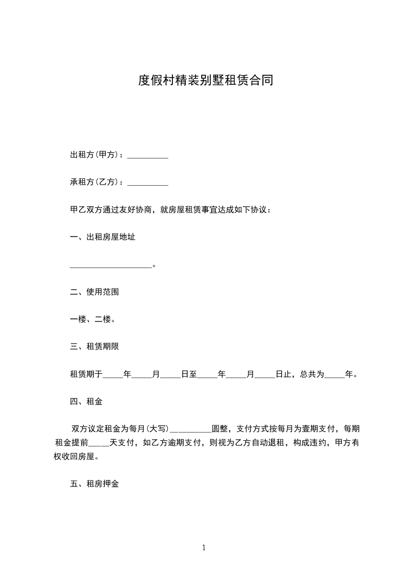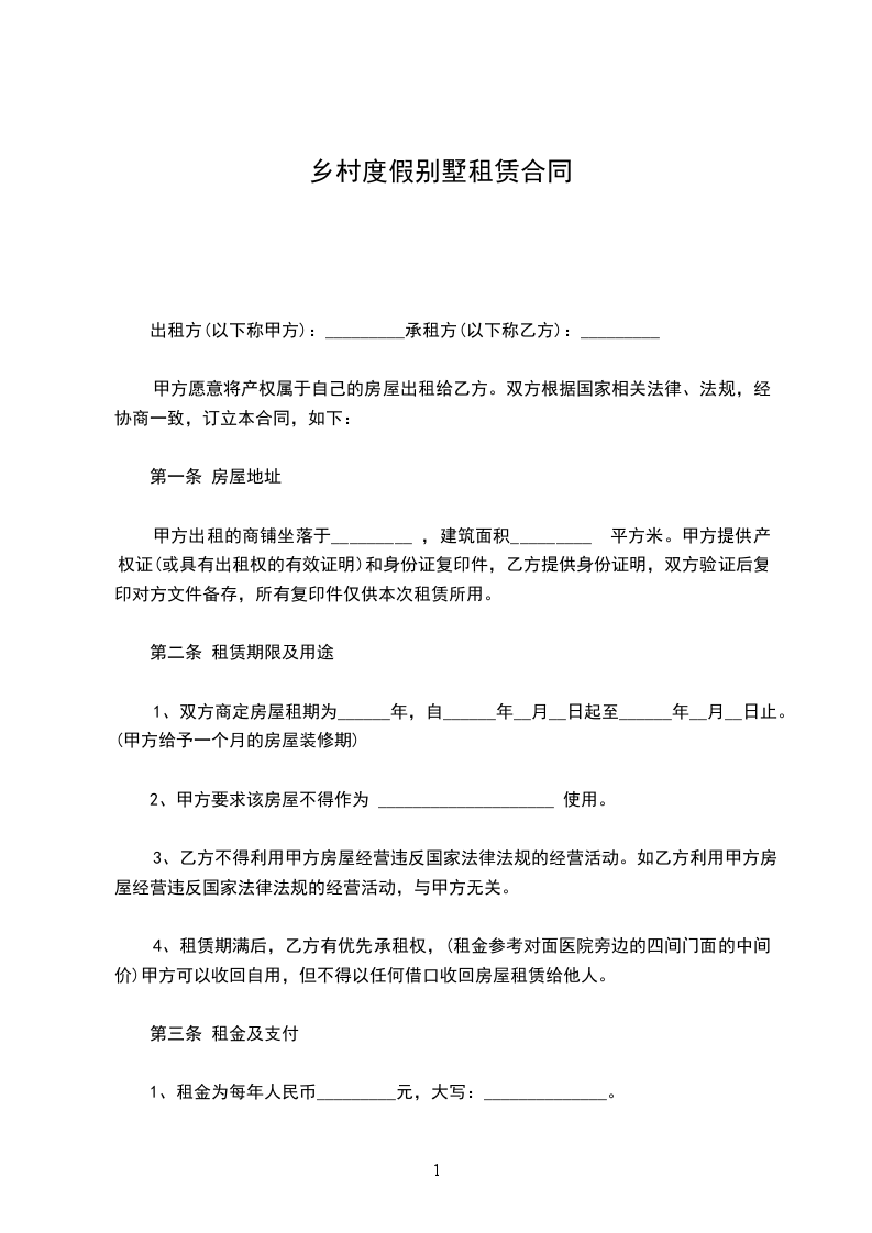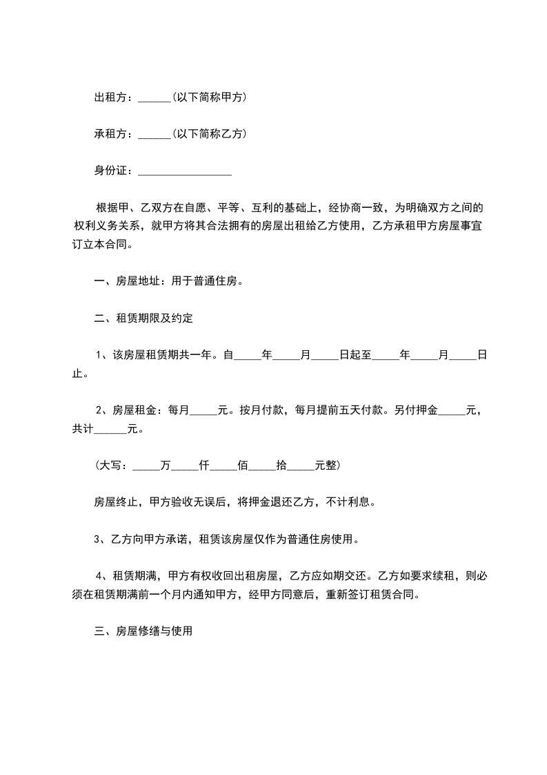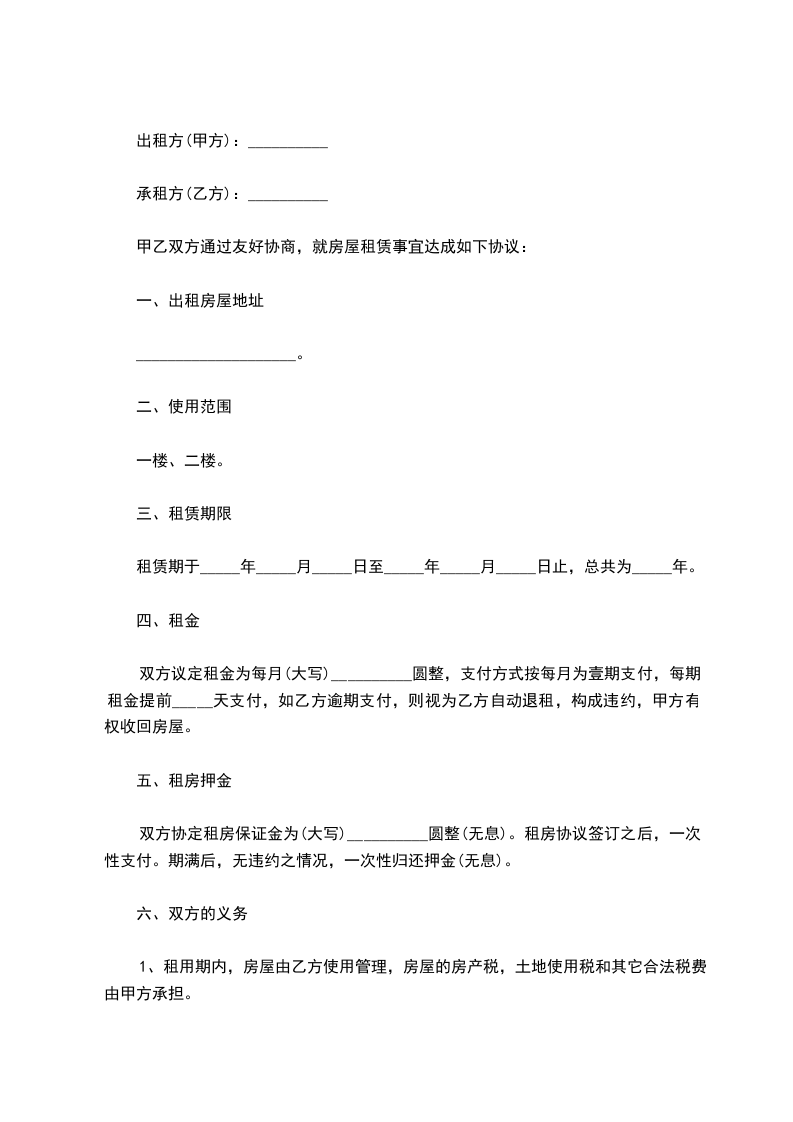 1、该房屋租赁期共一年。自_____年_____月_____日起至_____年_____月_____日止。