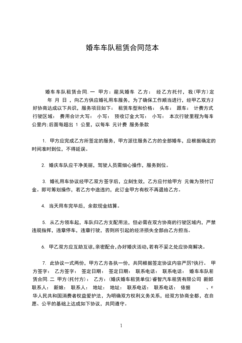 1. 甲方应完成乙方所签定的服务,甲方派往服务乙方的所有婚车,应按照确定的时间及时到位,不得延误。