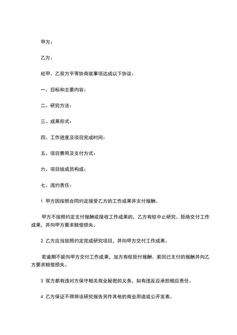 2 乙方应当按照约定完成研究项目,并向甲方交付工作成果。