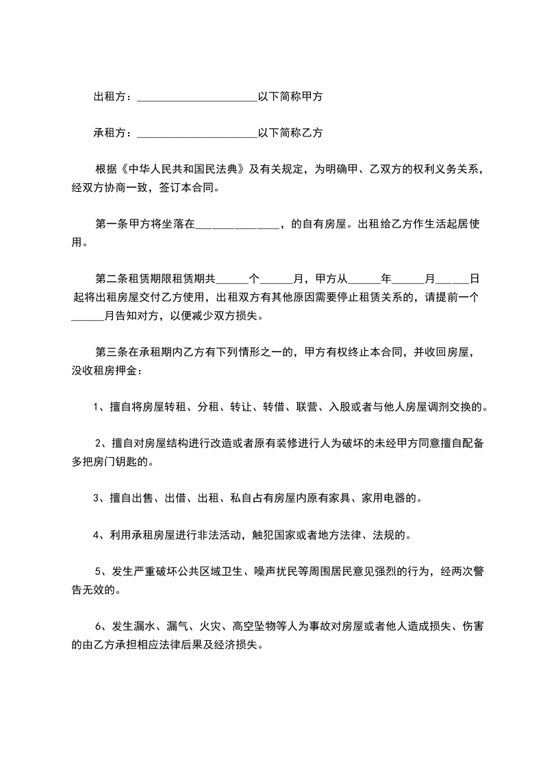 2、甲方于签约时收取乙方人民币(大写) 元作为租房保证金,为房屋基本设施的担保。租房期限满后,对于人为损坏的,将从保证金里扣除。