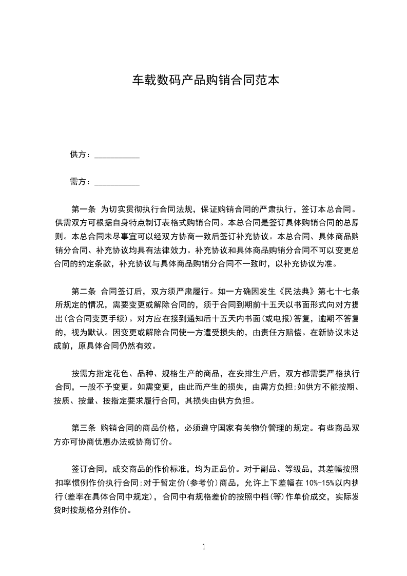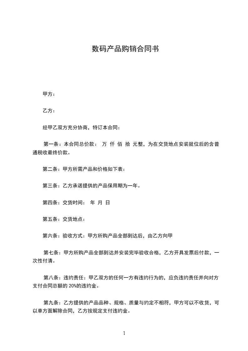第一条:本合同总价款: 万 仟 佰 拾 元整,为在交货地点安装就位后的含普通税收最终价款。