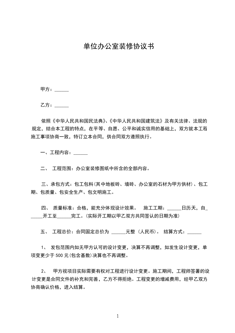 三、承包方式:包工包料(其中地板砖、墙砖、办公室的石材为甲方供材)、包工期、包质量、包安全生产、包文明施工。