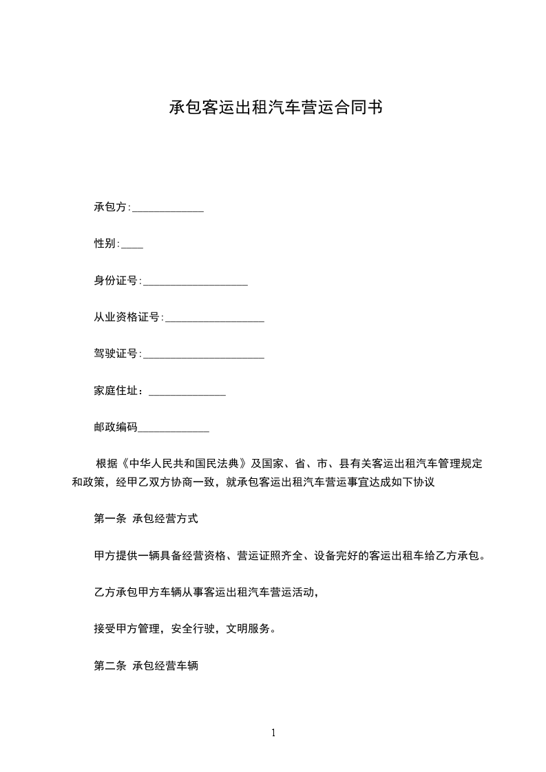 一、承包时间: 年 月 日起,每日 时至 时,承包费每日 元。承包期 年,特殊情况除外。