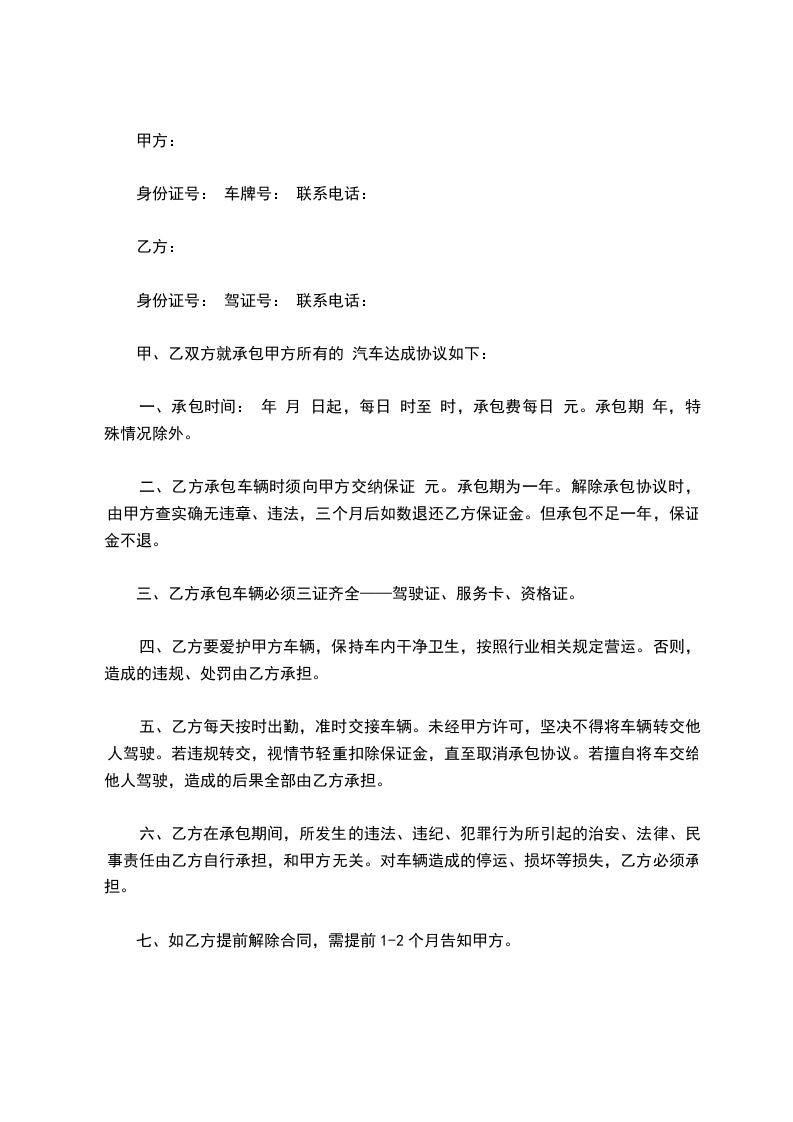 甲、乙双方就承包甲方所有的 汽车达成协议如下: