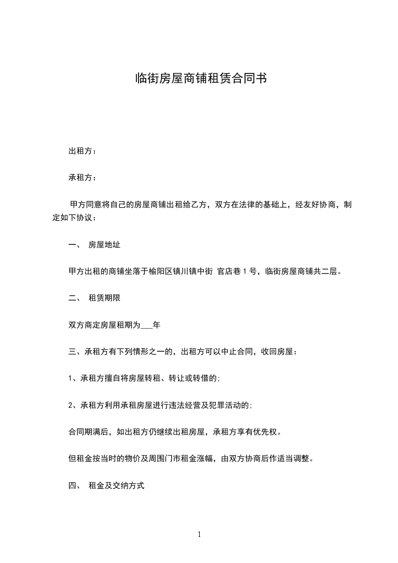 甲方出租的商铺坐落于榆阳区镇川镇中街 官店巷1号,临街房屋商铺共二层。
