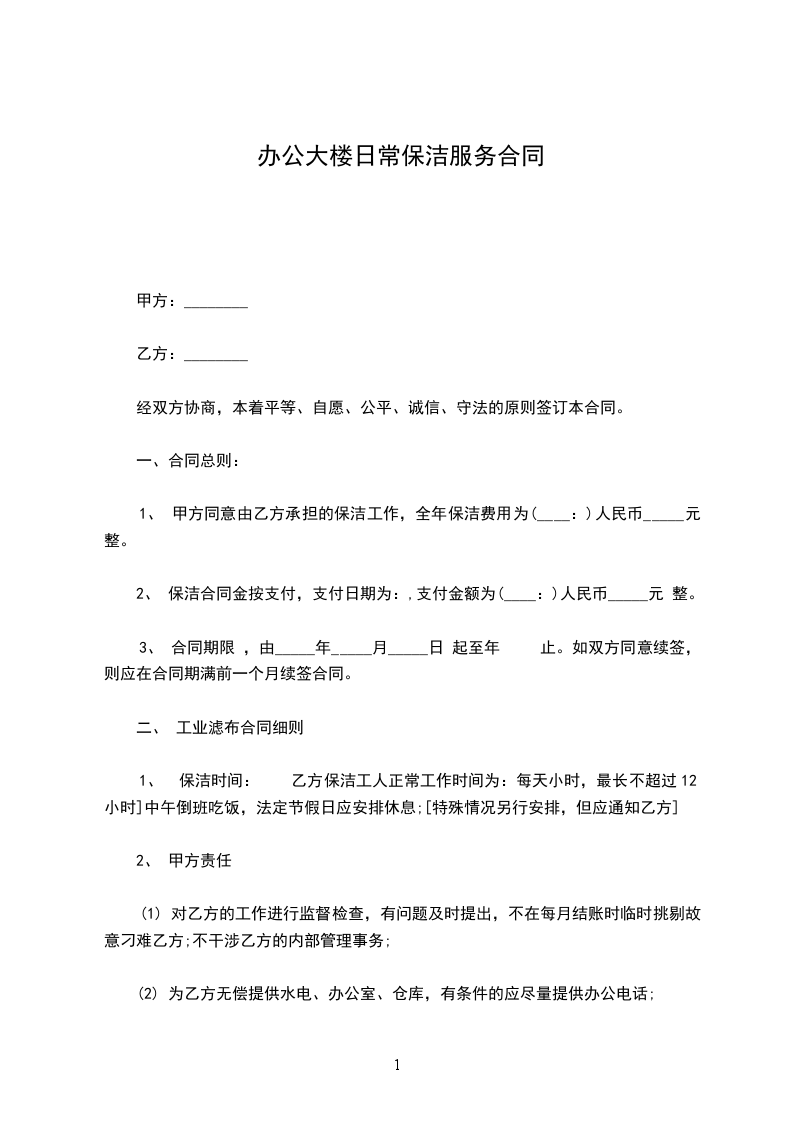 1、由乙方提供一切保洁工具及材料、用品。