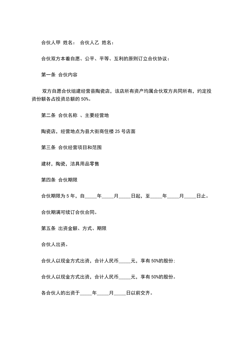 合伙双方本着自愿、公平、平等、互利的原则订立合伙协议: