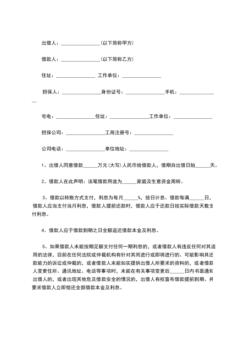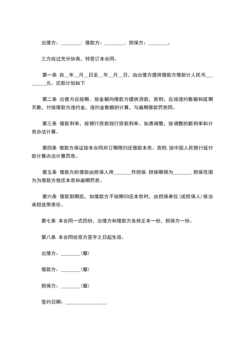 一、乙方贷给甲方人民币 元(大写: 壹拾万元_),于 年 月 日_前交付甲方。