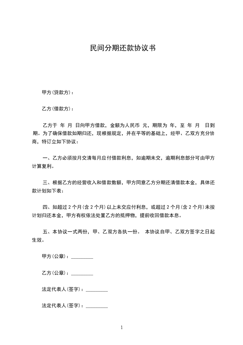 三、根据乙方的经营收入和借款数额,甲方同意乙方分期还清借款本金,具体还款计划如下表: