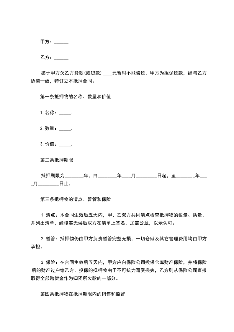 乙方于 年 月 日向甲方借款,金额为人民币 元,期限为 年,至 年 月 日到期。为了确保借款如期归还,现根据规定,并在平等的基础上,经甲、乙双方充分协商,特订立如下协议: