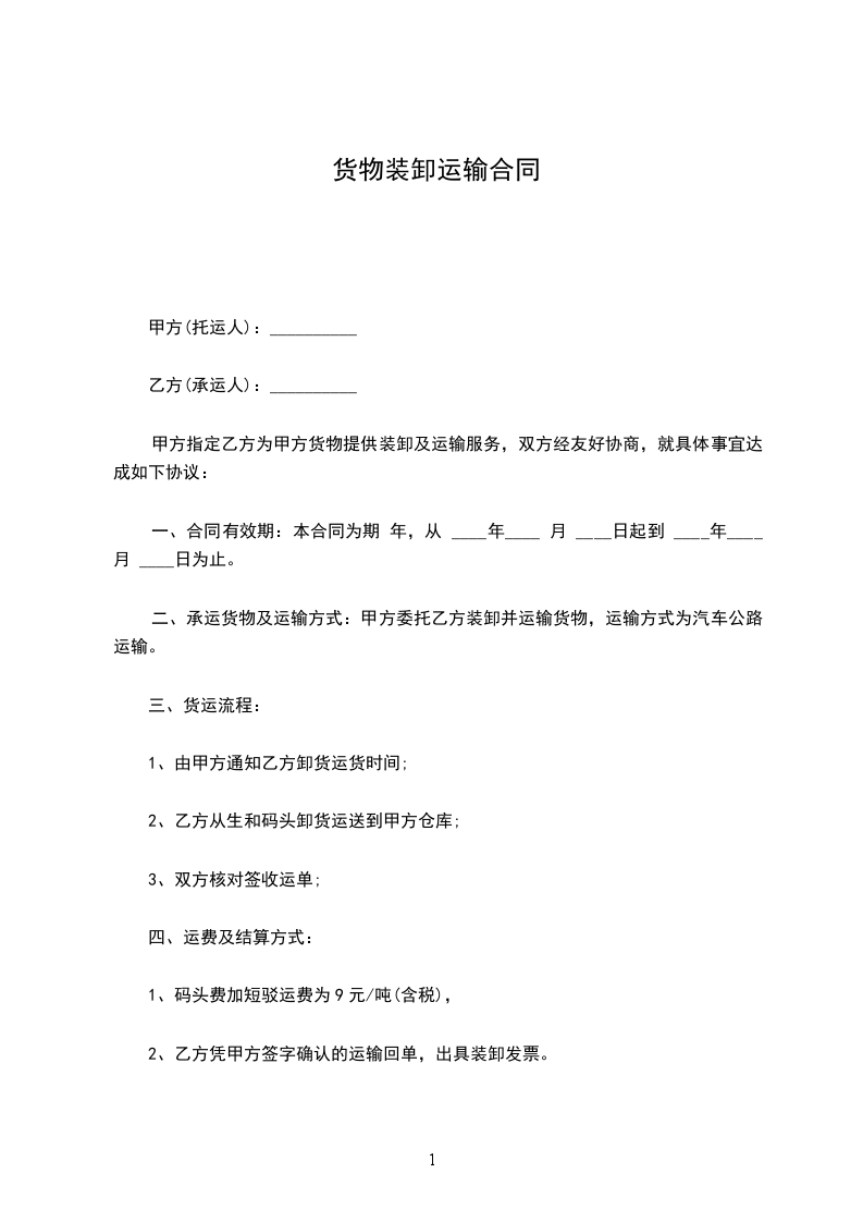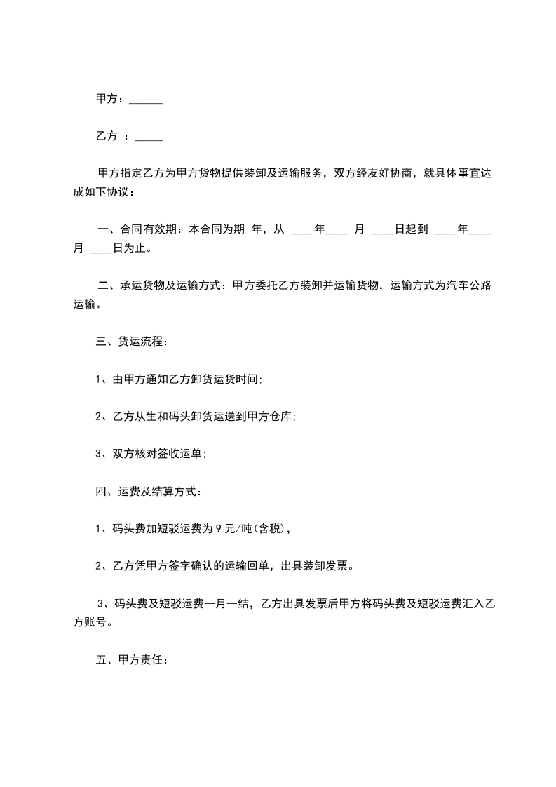 一、乙方对甲方 装卸搬运实行总包,费用总计 元。