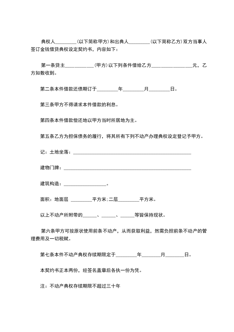 第五条 乙方为担保债务的履行,将其所有下列不动产办理典权设定登记予甲方。