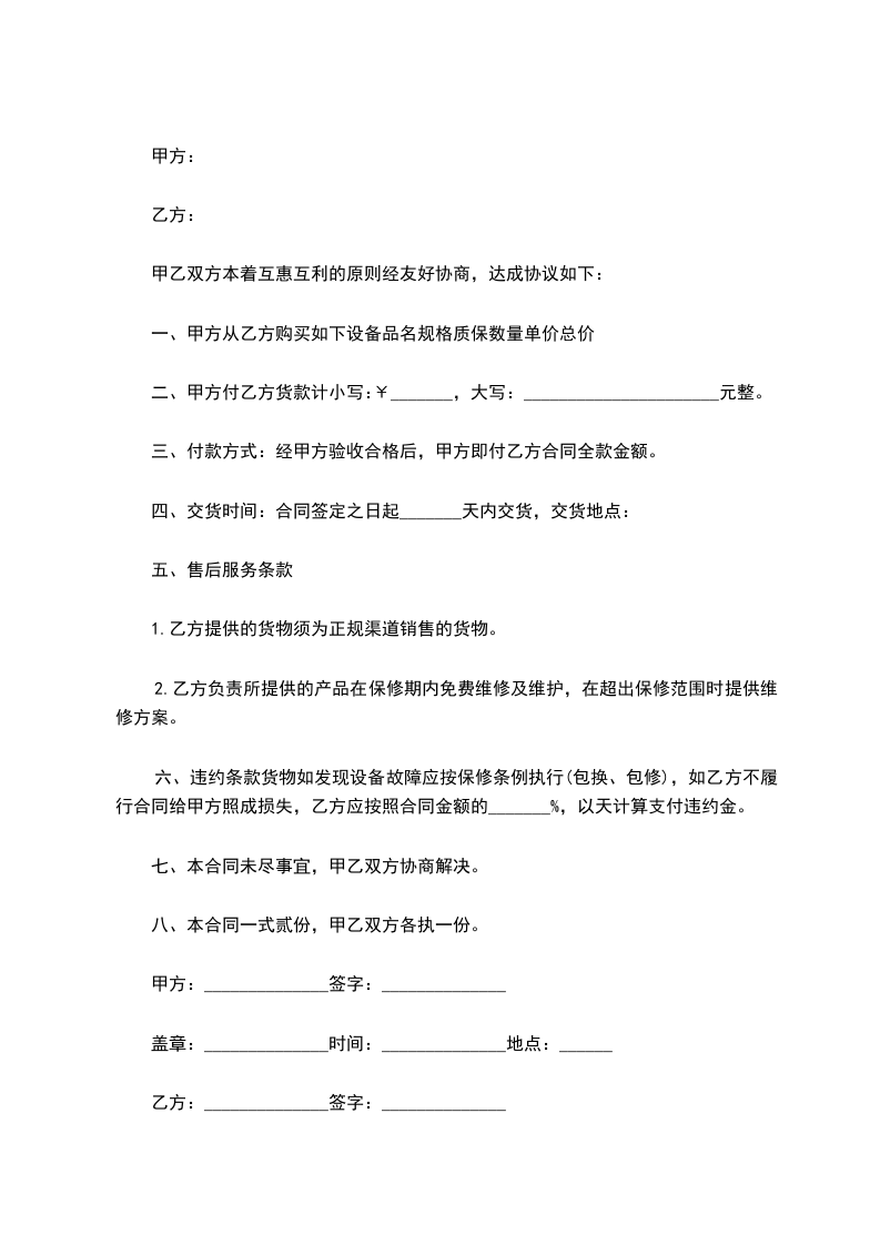 一、甲方从乙方购买如下设备品名规格质保数量单价总价