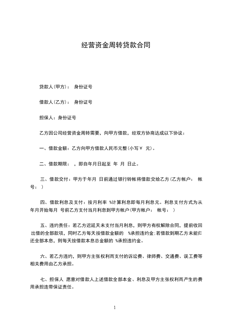 借款人(乙方): 身份证号