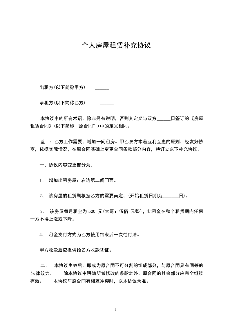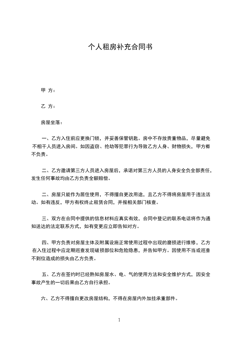 鉴于甲乙双方 年 月 日签订的房屋租赁合同(以下简称租赁合同),为进一步明确双方的权利义务,双方达成如下补充协议: